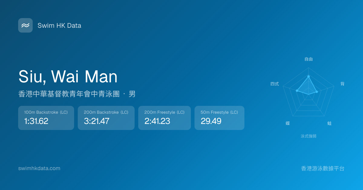 此圖表根據你所有比賽成績計算,顯示你在各泳式的相對強弱,僅供參考。繼續努力,每一次練習都會讓你更快更強!💪