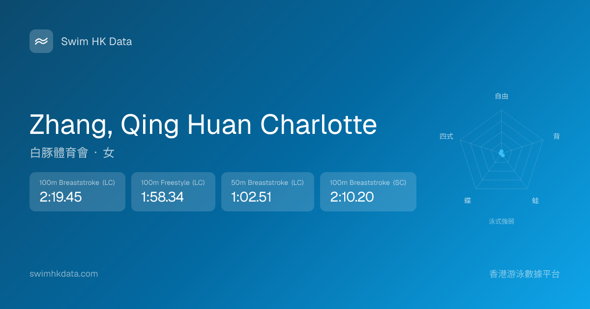 此圖表根據你所有比賽成績計算,顯示你在各泳式的相對強弱,僅供參考。繼續努力,每一次練習都會讓你更快更強!💪