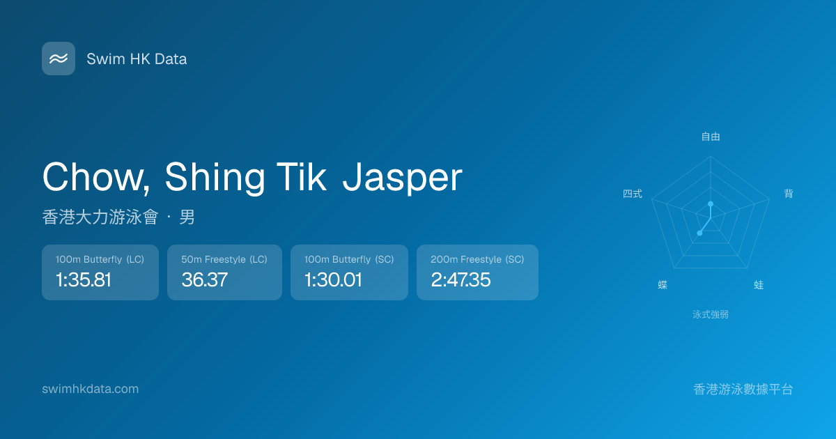 此圖表根據你所有比賽成績計算,顯示你在各泳式的相對強弱,僅供參考。繼續努力,每一次練習都會讓你更快更強!💪