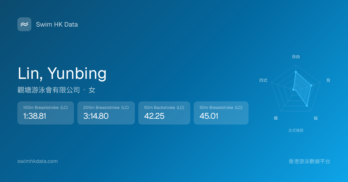 此圖表根據你所有比賽成績計算,顯示你在各泳式的相對強弱,僅供參考。繼續努力,每一次練習都會讓你更快更強!💪