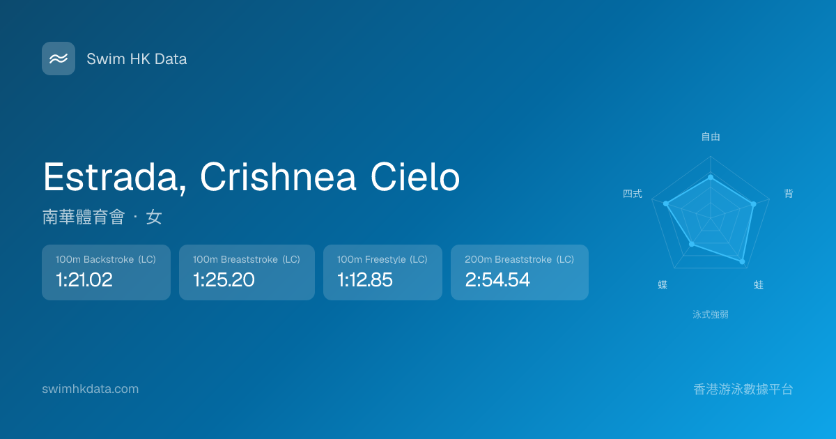 此圖表根據你所有比賽成績計算,顯示你在各泳式的相對強弱,僅供參考。繼續努力,每一次練習都會讓你更快更強!💪