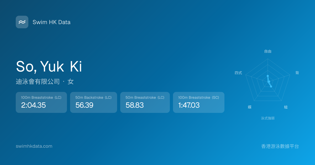 此圖表根據你所有比賽成績計算,顯示你在各泳式的相對強弱,僅供參考。繼續努力,每一次練習都會讓你更快更強!💪