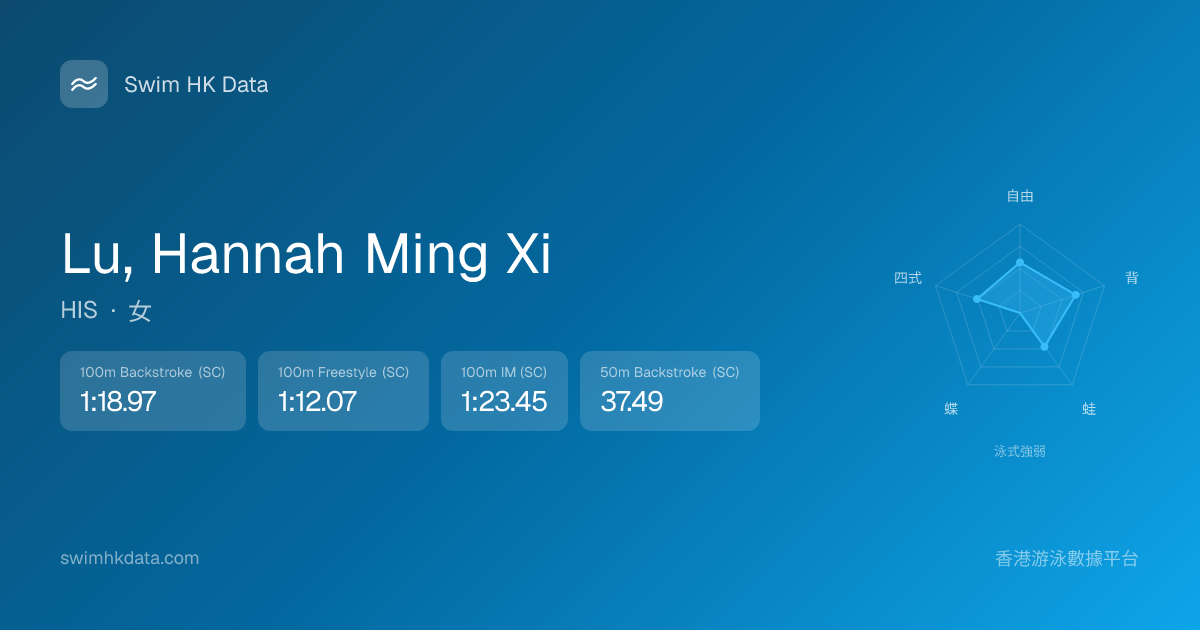 此圖表根據你所有比賽成績計算,顯示你在各泳式的相對強弱,僅供參考。繼續努力,每一次練習都會讓你更快更強!💪