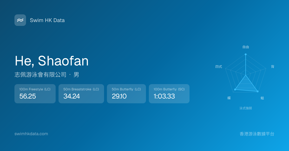 此圖表根據你所有比賽成績計算,顯示你在各泳式的相對強弱,僅供參考。繼續努力,每一次練習都會讓你更快更強!💪