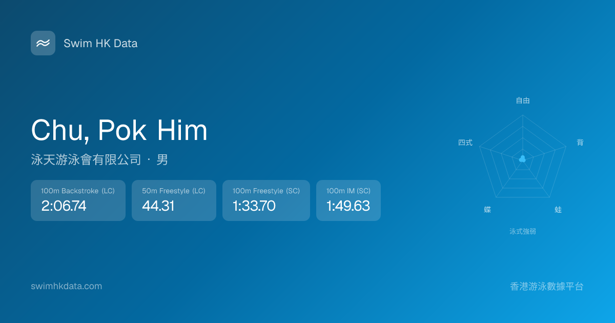 此圖表根據你所有比賽成績計算,顯示你在各泳式的相對強弱,僅供參考。繼續努力,每一次練習都會讓你更快更強!💪