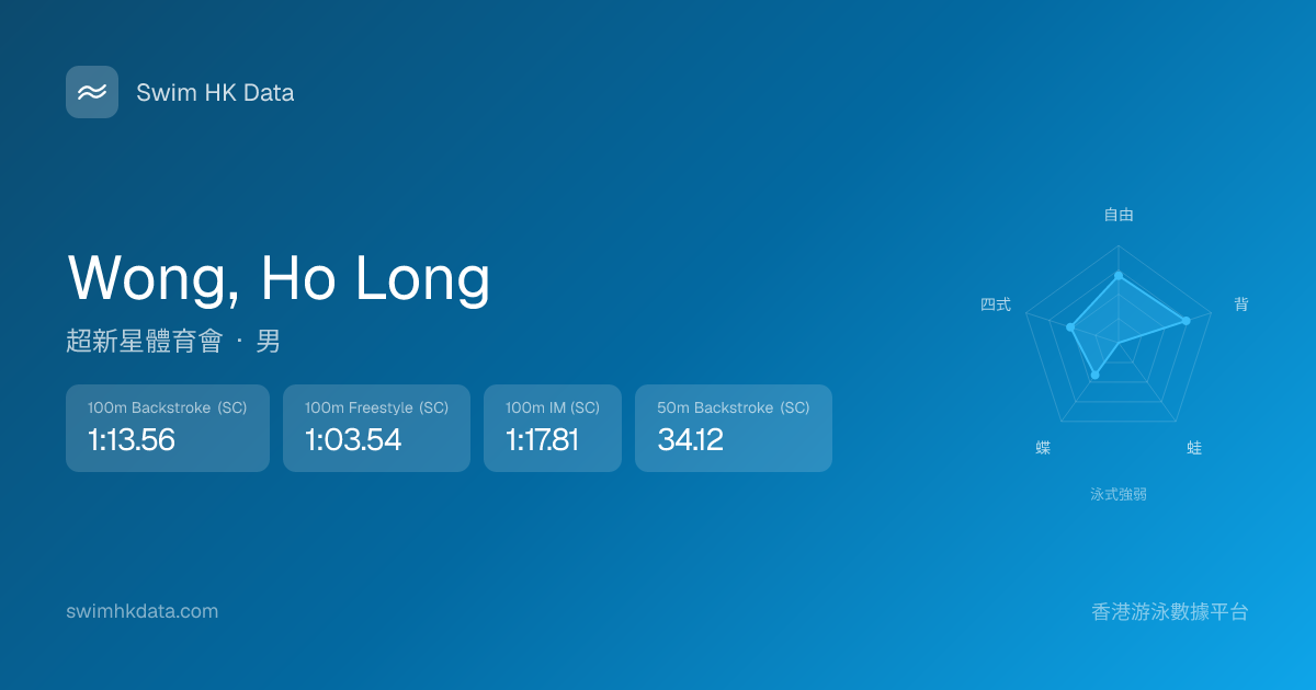 此圖表根據你所有比賽成績計算,顯示你在各泳式的相對強弱,僅供參考。繼續努力,每一次練習都會讓你更快更強!💪
