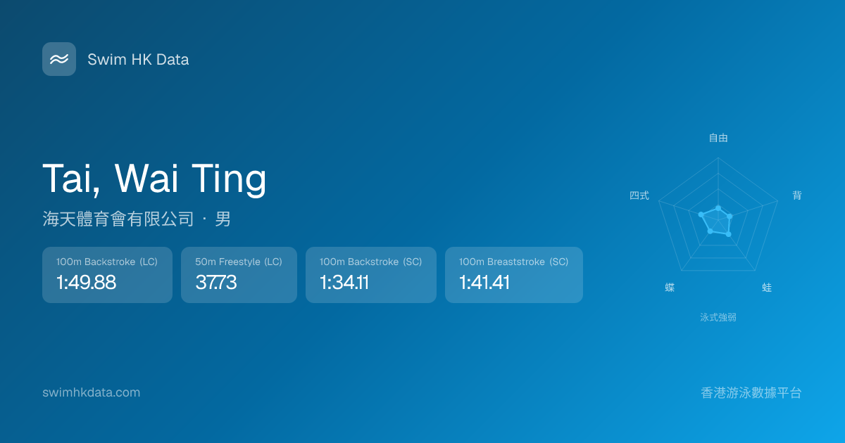 此圖表根據你所有比賽成績計算,顯示你在各泳式的相對強弱,僅供參考。繼續努力,每一次練習都會讓你更快更強!💪