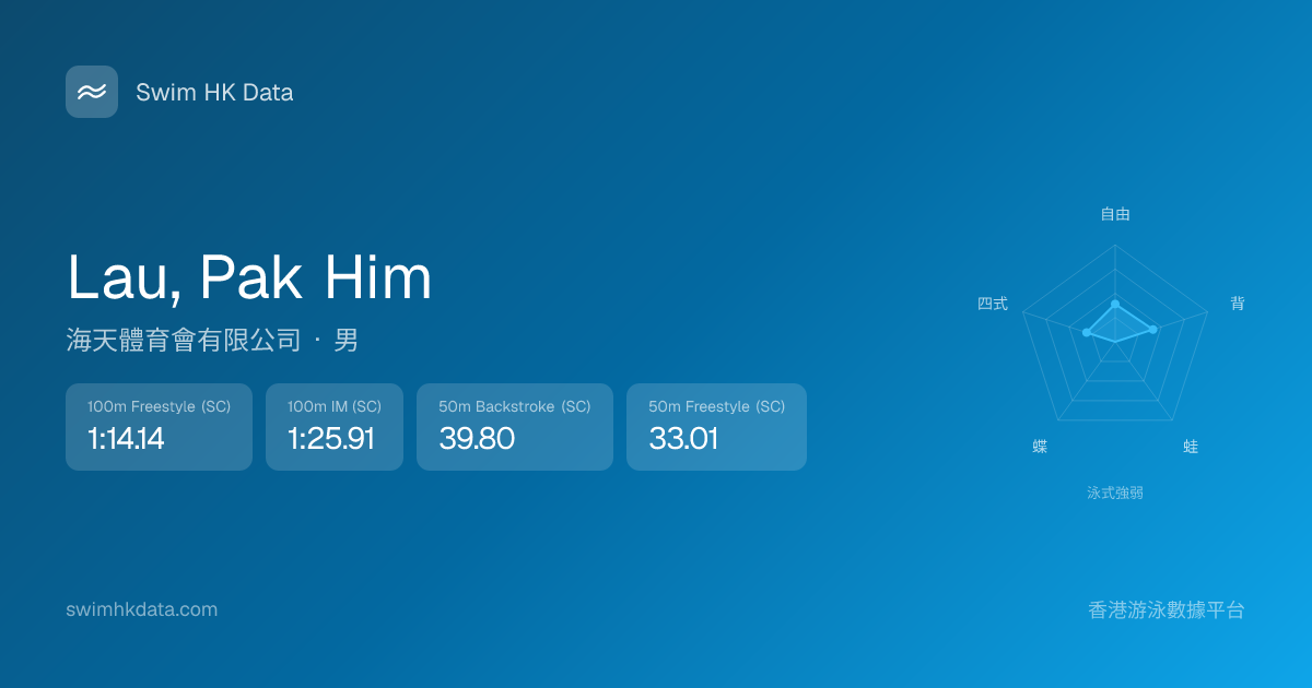 此圖表根據你所有比賽成績計算,顯示你在各泳式的相對強弱,僅供參考。繼續努力,每一次練習都會讓你更快更強!💪