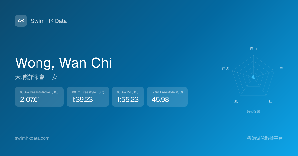 此圖表根據你所有比賽成績計算,顯示你在各泳式的相對強弱,僅供參考。繼續努力,每一次練習都會讓你更快更強!💪