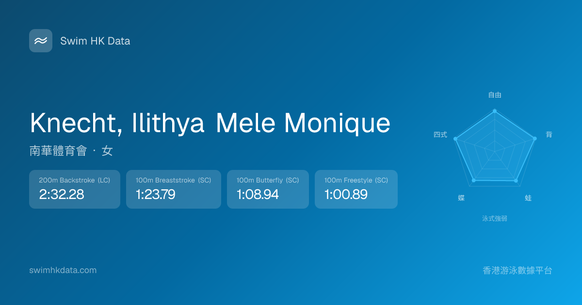 | 50m 自由泳 | 27.89 2026-03-04 | 1 | 15 | 2026-03-04 |