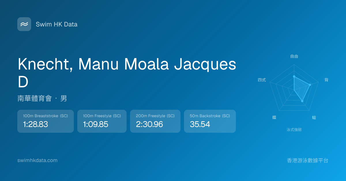 此圖表根據你所有比賽成績計算,顯示你在各泳式的相對強弱,僅供參考。繼續努力,每一次練習都會讓你更快更強!💪