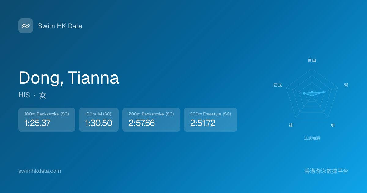此圖表根據你所有比賽成績計算,顯示你在各泳式的相對強弱,僅供參考。繼續努力,每一次練習都會讓你更快更強!💪
