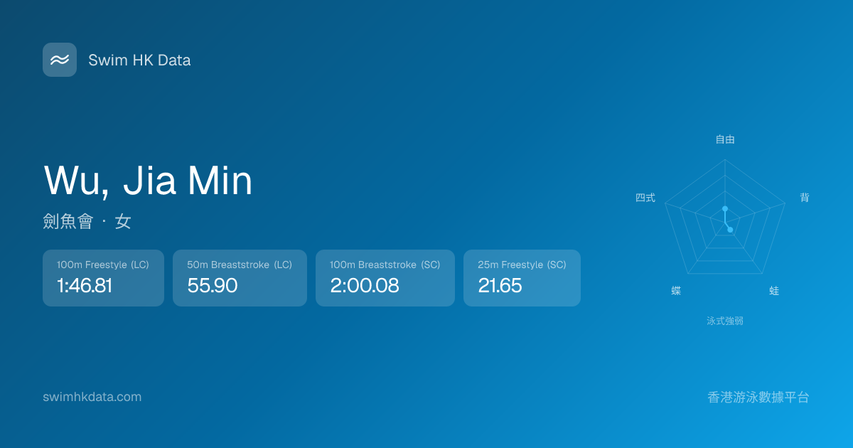 此圖表根據你所有比賽成績計算,顯示你在各泳式的相對強弱,僅供參考。繼續努力,每一次練習都會讓你更快更強!💪