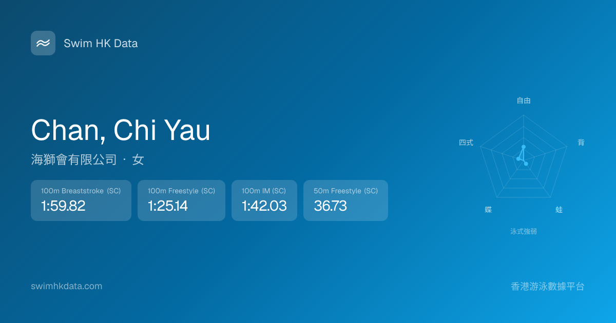 此圖表根據你所有比賽成績計算,顯示你在各泳式的相對強弱,僅供參考。繼續努力,每一次練習都會讓你更快更強!💪
