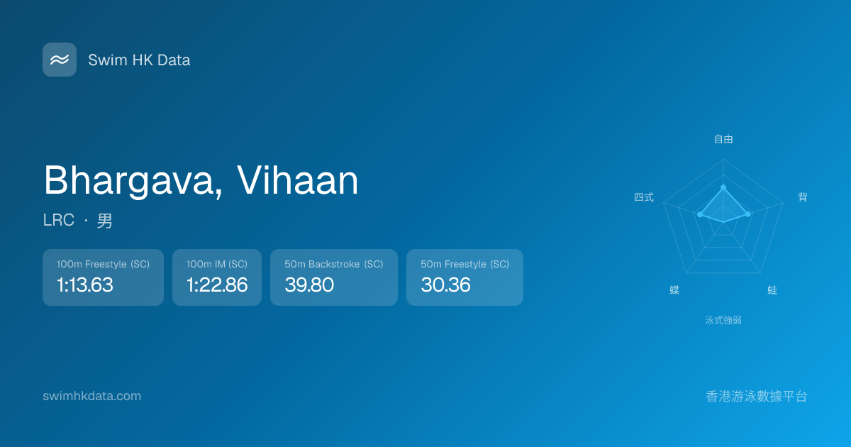 此圖表根據你所有比賽成績計算,顯示你在各泳式的相對強弱,僅供參考。繼續努力,每一次練習都會讓你更快更強!💪