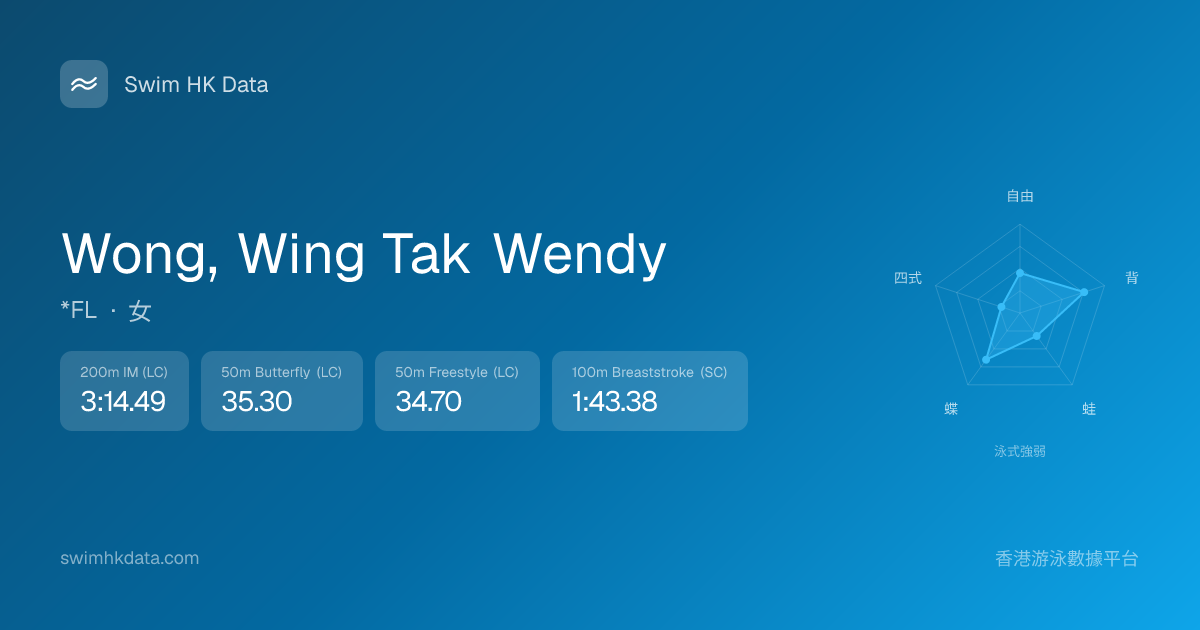 此圖表根據你所有比賽成績計算,顯示你在各泳式的相對強弱,僅供參考。繼續努力,每一次練習都會讓你更快更強!💪