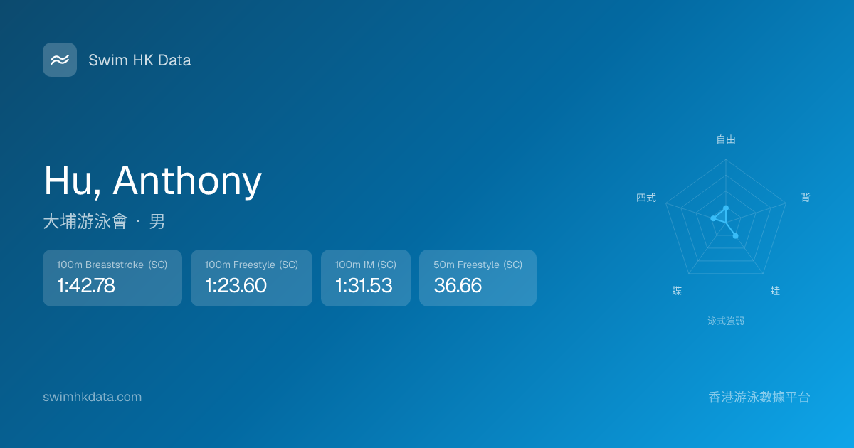 此圖表根據你所有比賽成績計算,顯示你在各泳式的相對強弱,僅供參考。繼續努力,每一次練習都會讓你更快更強!💪