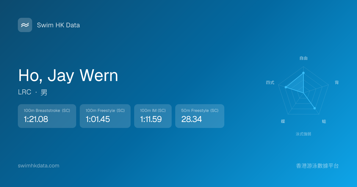 此圖表根據你所有比賽成績計算,顯示你在各泳式的相對強弱,僅供參考。繼續努力,每一次練習都會讓你更快更強!💪